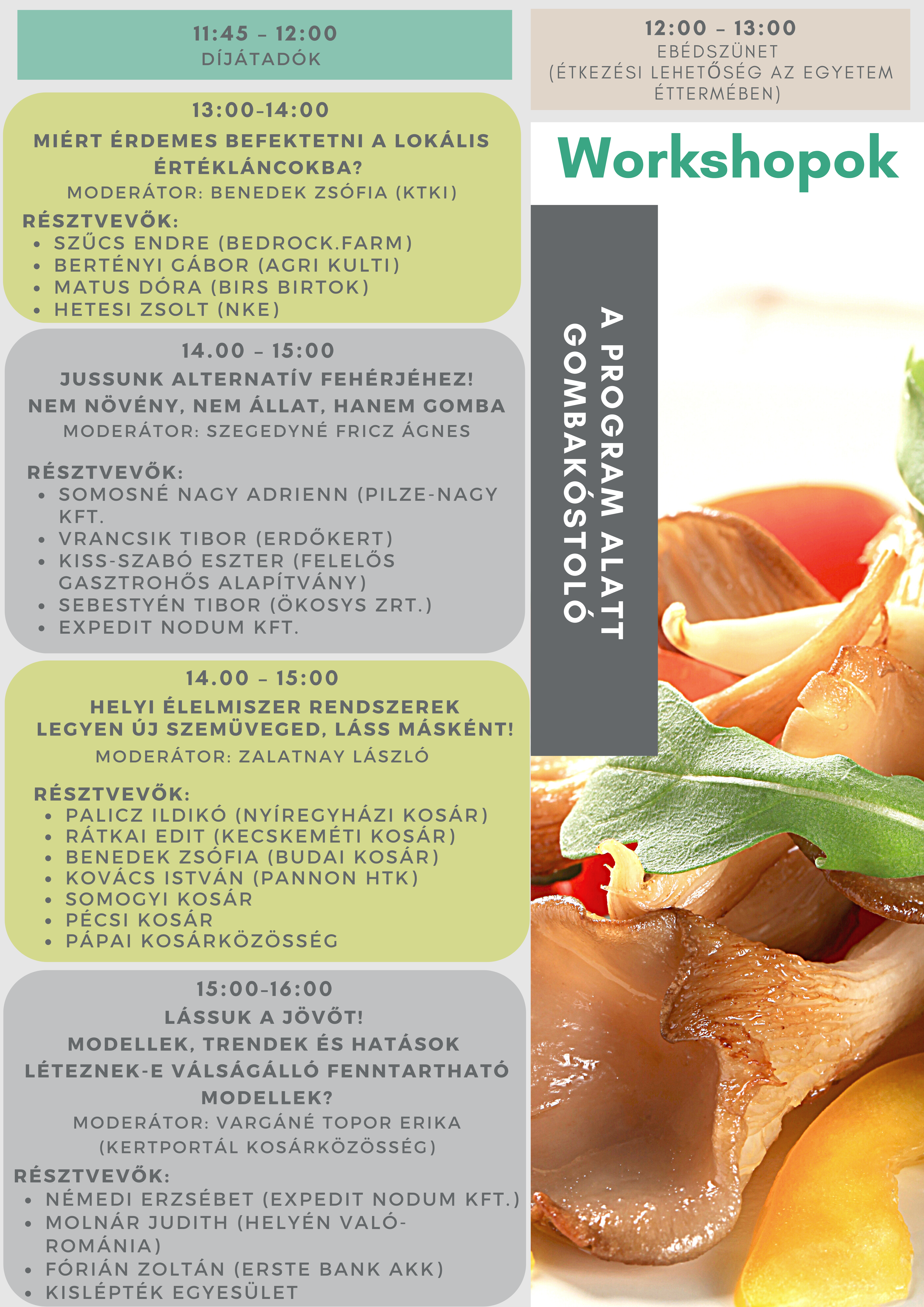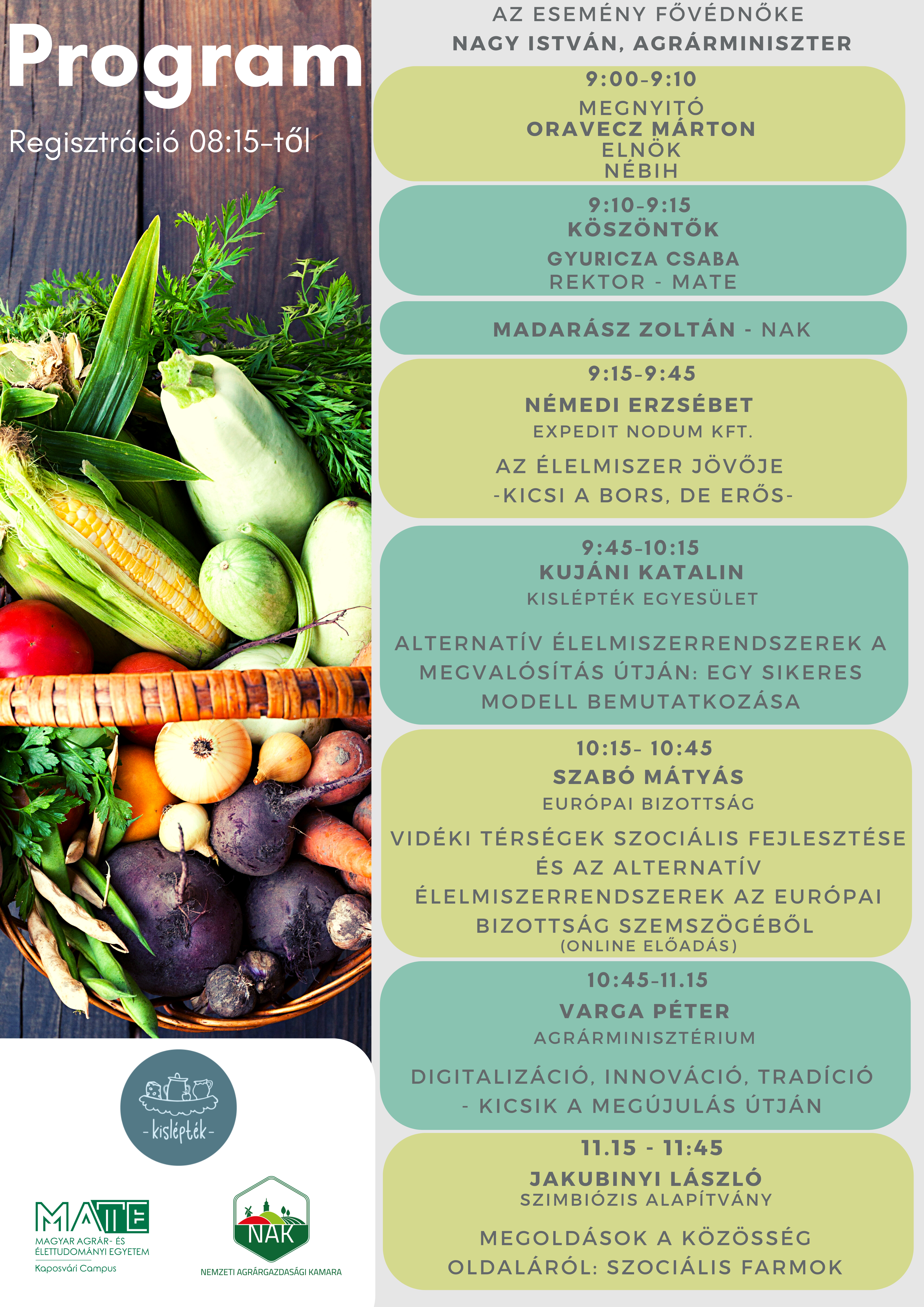 A résztvevők szakmai előadásokon megismerkedhetnek az aktuális trendekkel, betekintést kaphatnak a nemzetközi és a hazai helyzetbe, a várható támogatási lehetőségekbe és a szabályozás aktualitásait is megismerhetik. Továbbá a REL szereplők (termelők, piacszervezők, vidékfejlesztők, kosárközösségek, beszállítók, szaktanácsadók, helyi terméket használó éttermek és kereskedők, önkormányzatok, LEADER szervezetek, tanácsadók, kertészkedők) számára egy üzleti találkozóra, szakmai konzultációkra nyújtunk lehetőséget szakkiállítás és szakmai fórum formájában.