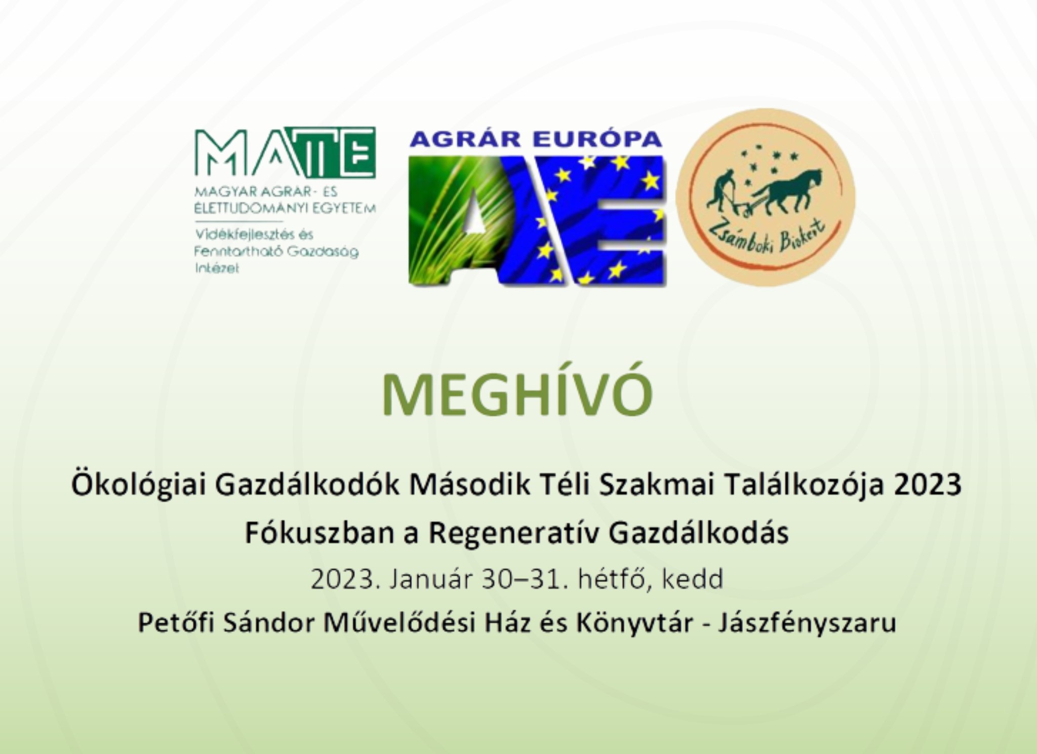 2023. január 30.-31.-én rendezik meg Jászfényszaruban az Öko Gazdálkodók Második Téli Szakmai Találkozóját. Fókuszban a regeneratív gazdálkodás.