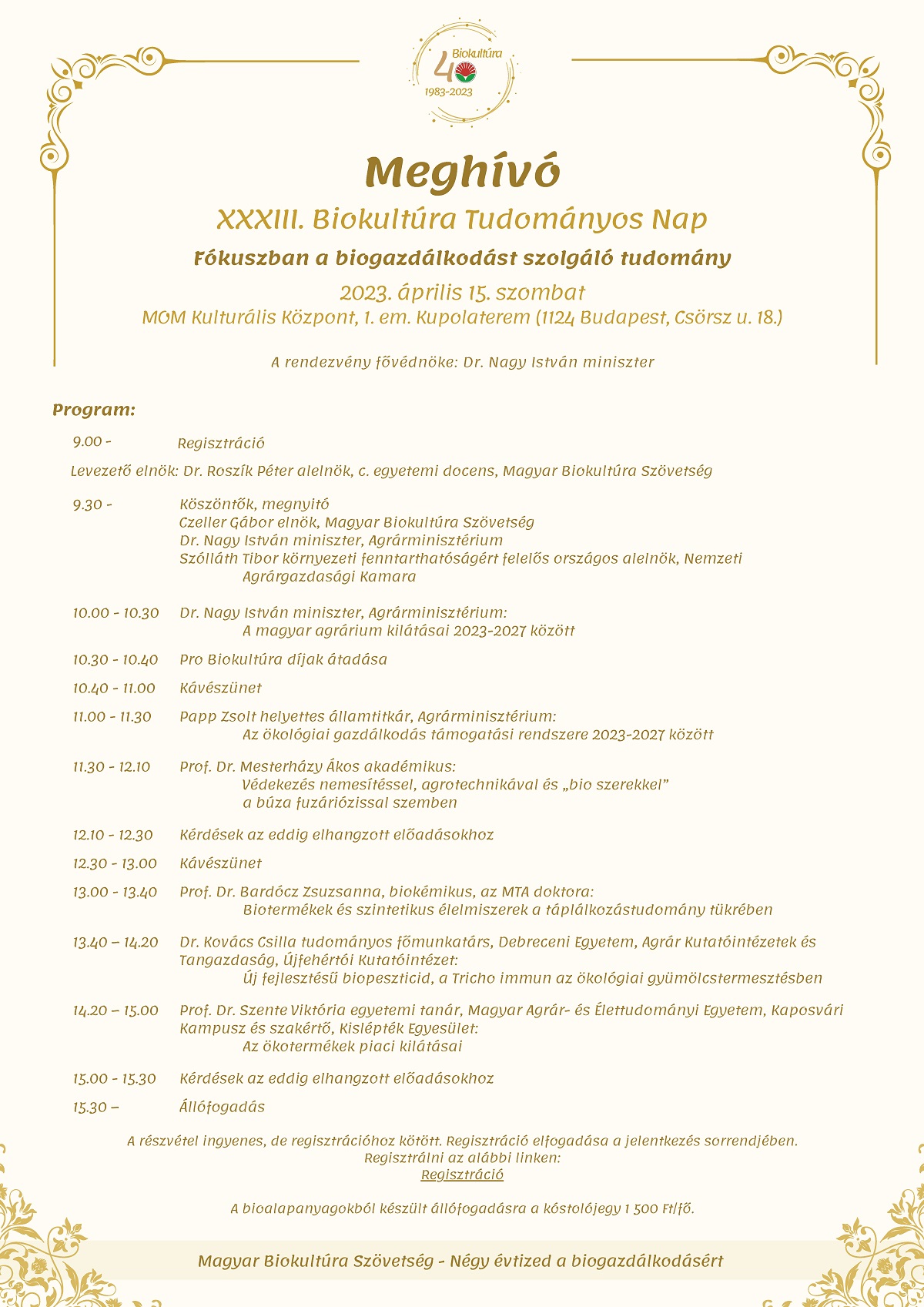 A Magyar Biokultúra Szövetség által szervezett Biokultőra Tudományos Nap XXXIII. alkalommal kerül megrendezésre Budapesten.