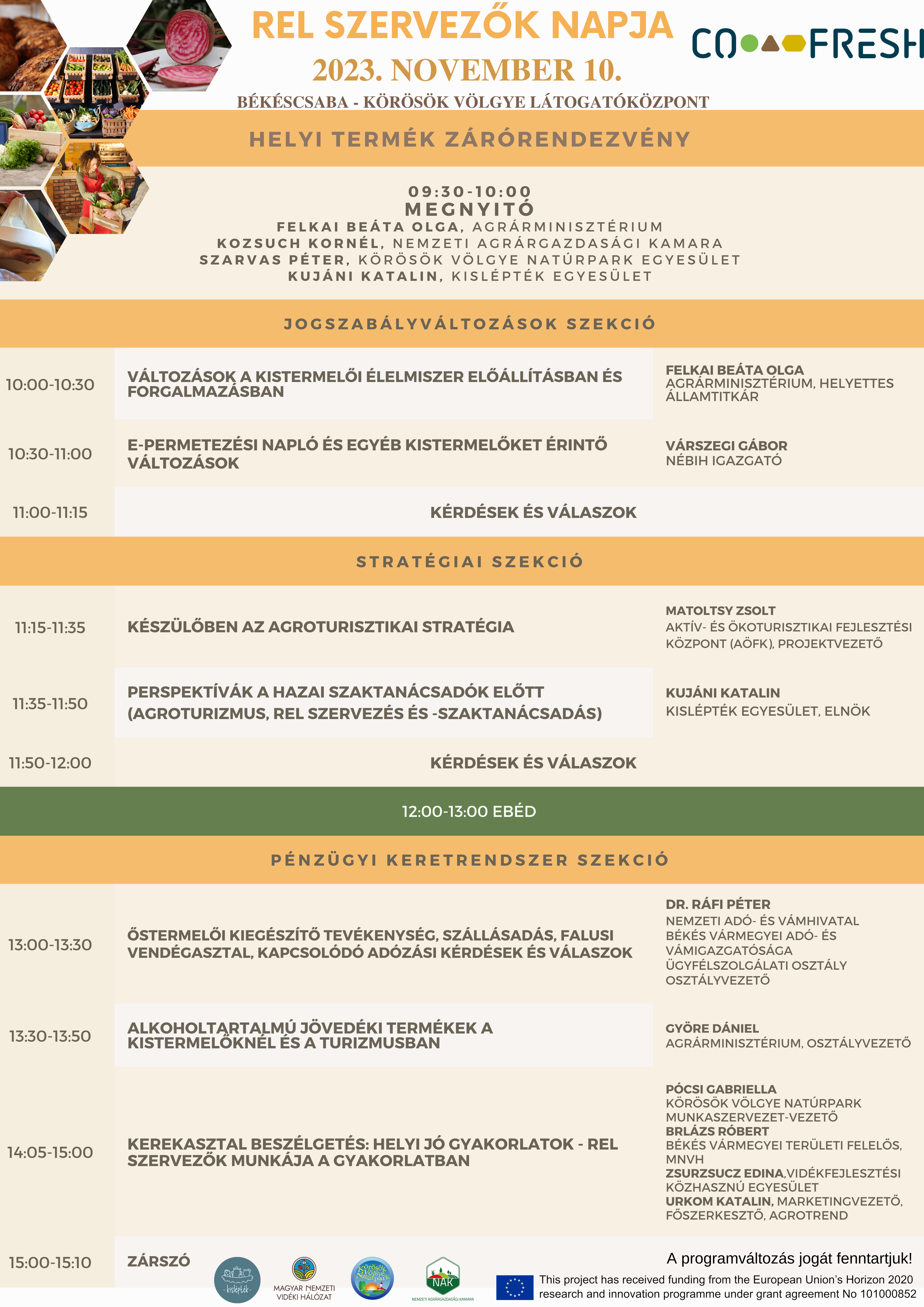 Időpont: 2023. november 10.(péntek) 09:30 – 15:10
