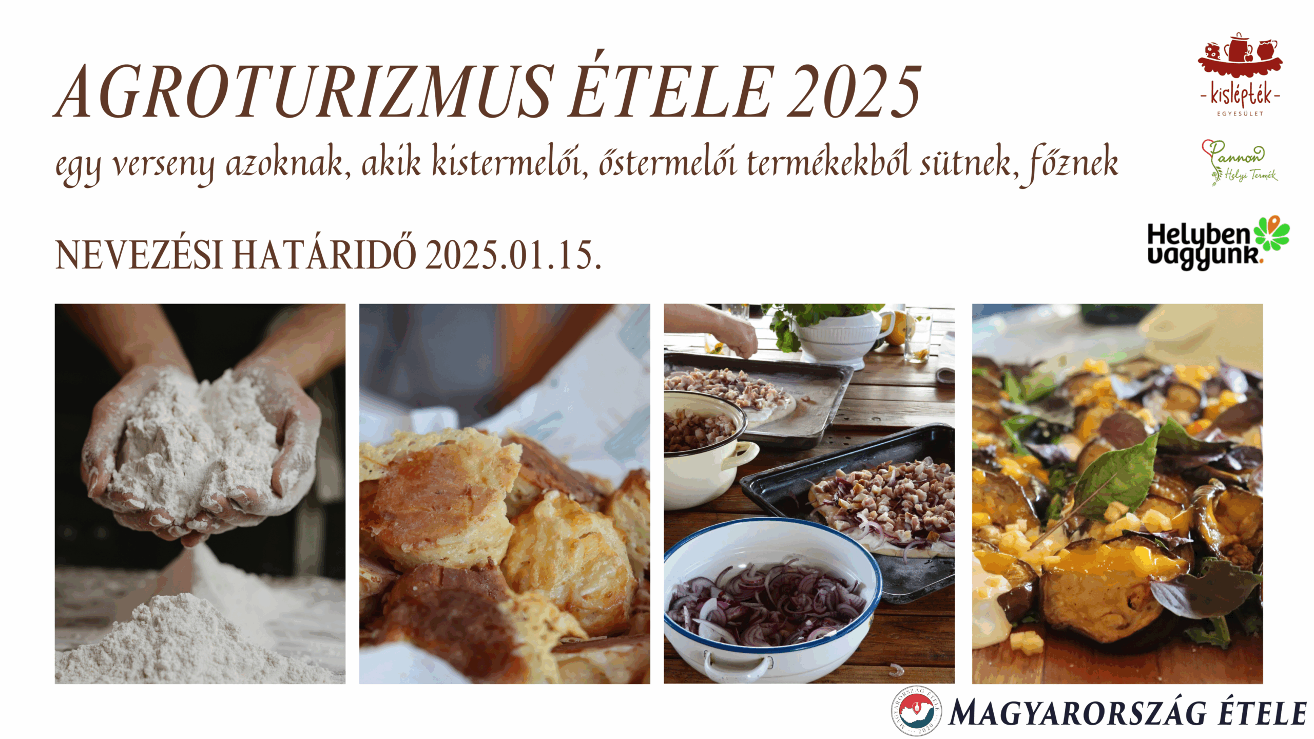 A nevezéseket 2025. január 15-ig lehet benyújtani, és január 30-ig kell a receptúrát teljesen kidolgozva beküldeni. A „Magyarország Éltele” verseny keretein belül megszervezett “Agroturizmus Étele 2025” verseny egyedülálló lehetőség arra, hogy a vendéglátásba bekerüljenek a termelői termékek, és a szabadidejüket töltő családok pedig megismerjék a gazdálkodók turisztikai és termékkínálatát.