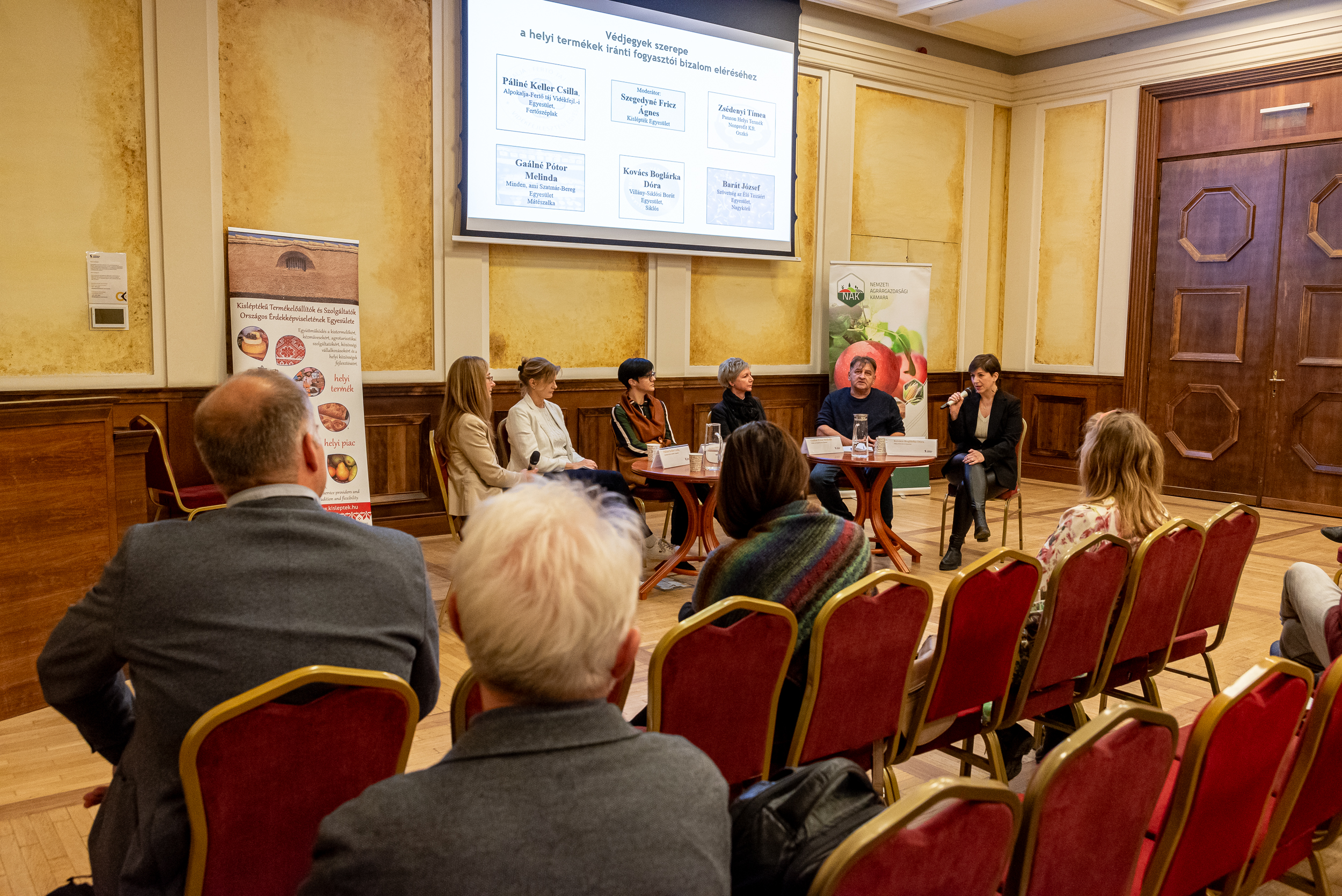 Szegedyné Fricz Ágnes a Kislépték Egyesület szakmai vezetője előadásában arról beszélt, hogy a védjegyek hogyan járulhatnak hozzá a helyi termékek iránti fogyasztói bizalom eléréséhez. Megemlítette a HÍR programot, melyet az Agrárminisztérium indított azzal a céllal, hogy létrehozza Magyarország hagyományos és tájjellegű mezőgazdasági termékeinek gyűjteményét. A földrajzi árujelzőkről és az „eAmbrosia adatbázisról is szó volt, majd a régiókhoz kapcsolódó védjegyekre került a szó, amelyeket a gyakorlatban is megismerhettek a résztvevők a kerekasztal beszélgető partnerek példáin keresztül.