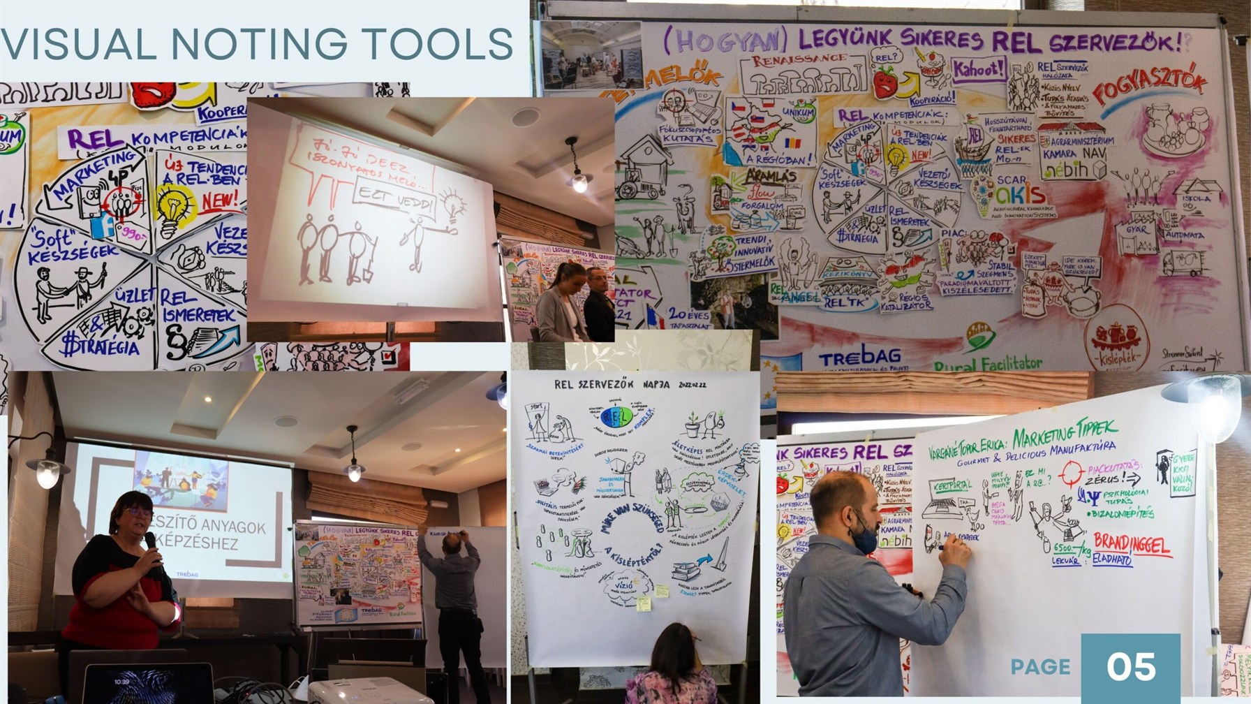 The presented results and the transferred knowledge were made even more memorable for the participants by Grafacity.eu’s visual notes and live drawing. The opening presentation of Katalin Kujáni, the president of the Association, about the project and the essence and structure of the training took place entirely along a creative template.