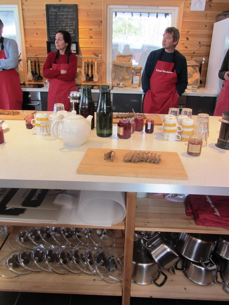 Liza barátságosan elmondta, hogy ma kenyeret fogunk sütni, de mivel csak pár óránk van így elkészítette a fontosabb fázisokat. Legelőször a lisztekkel ismertetett meg. Árpa, és különfére búza, különféle szemcsemérettel. Elmondta, hogy ő vadélesztőt használ (kovász). A kelesztés egy este alatt kellene megtörténjen, ezért a bekeverés után azt félretéve megkaptuk az előkelesztett tésztát, amit formázhattunk, majd újabb kelesztés kellett. A kész cipókat kis péklapáton vihettük ki az udvari kemencéhez, ahol a férje sütöttem meg, míg mi a félméteres hóban padokkal körülvett, és állatbőrökkel letakart tábortűzhely körül pihenhettünk. Mindenkinek feltünk az innen jól látható kis melléképület falán a „LIFE IS GOOD” felirat. Elolvastuk és éreztük is ott.