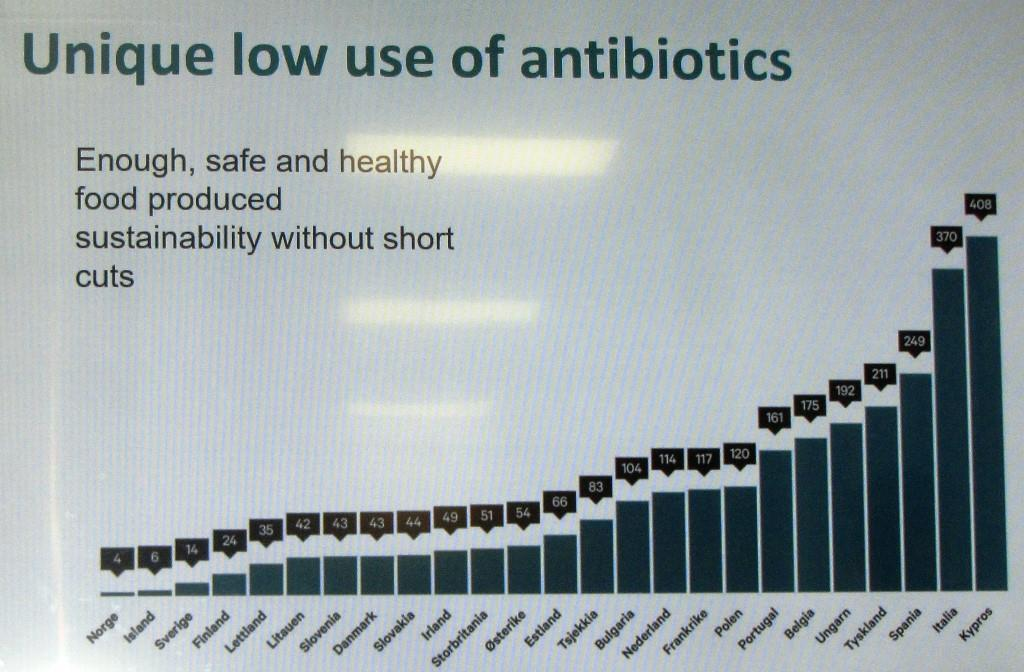 Az élelmiszerbiztonság tekintetében is többször hangzott el, hogy a kis és szétszórt gazdaságok miatt a kórokozók sem tudnak jól szaporodni. Minden előadó egymástól függetlenül elmondta, hogy a jövő egyik legnagyobb fenyegetése az antibiotikum rezisztencia. A Norvég gazdaság már most előre ezzel számol, és így náluk az egyik legalacsonyabb az antibiotikum felhasználás.