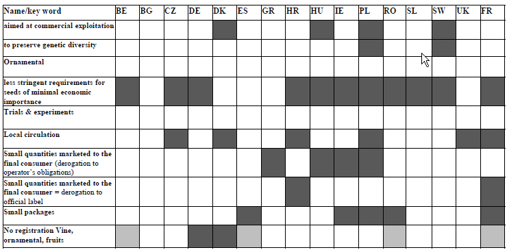 – kevésbé szigorú szabályok a gazdaságilag kis jelentőséggel bíró magokra (fajokra)