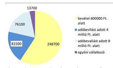 Az egyéni gazdaságok helyzetét tovább bontva (2. ábra) a NAV 2018-as adatai szerint az is láthatóvá válik, milyen bevételi kategóriába esnek az ínycsiklandozó termékeket előállító kisebb termelők. Többségük (248.700 fő) bevétele nem éri el a 600 ezer forintot , míg 81.500 fő a 4 millió forint alatti és 76 ezer fő a 8 millió Ft forint alatti bevételi kategóriába tartozik.